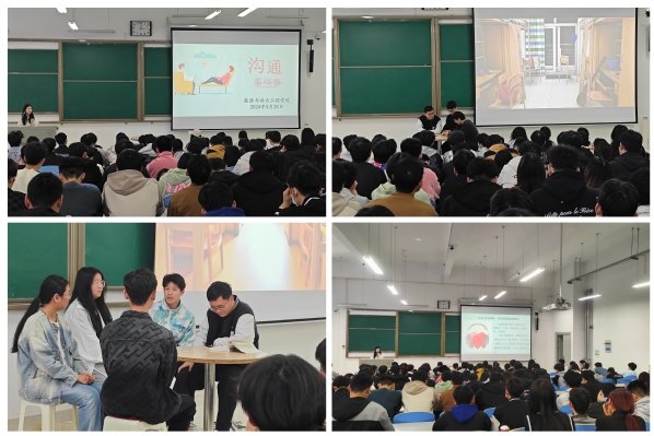 活动现场,学院心理工作室的成员通过情景扮演让大家体会沟通中的障碍和误解产生的原因,通过一系列精心设计的富有启发性的互动环节让大家就怎样进行有效沟通进行了体验。大家积极参与,现场气氛热烈。胡玉馨同学以《沟通那些事》为题,分享了多个日常生活中的人际交往沟通案例,引领同学们理解有效倾听、情绪管理、冲突伤害避让和恰当表达在沟通中的重要性,她鼓励同学们以成熟、理性态度去面对和处理人际关系。