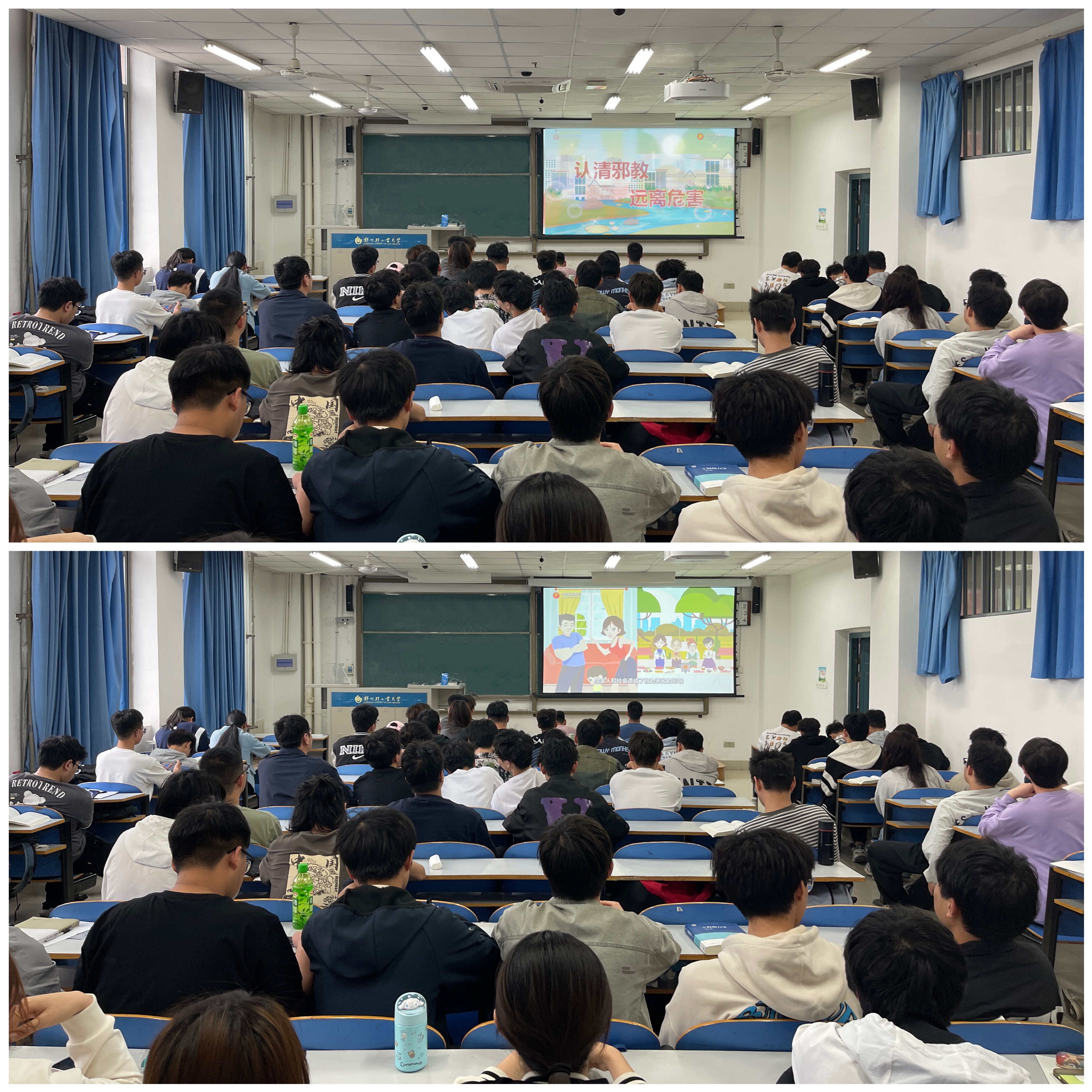 通过观看《认清邪教远离危害》、《如何正确认识和警惕邪教组织》宣传片,大家了解了邪教的识别方法、常用骗术、显著特征及其对社会和个人的危害,学习了预防、抵制邪教的知识。辅导员们提醒大家,要树立健康积极的生活方式,积极弘扬社会主义核心价值观,遇到邪教宣传要做到不听、不看、不信,不传,不参与,发现邪教活动线索积极向有关部门举报,自觉筑牢抵制邪教的思想堡垒,以实际行动坚决抵制邪教侵害。