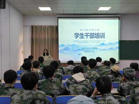 为提高学生干部的工作能力和综合素质,11月6日下午,能源与动力工程学院在禹州实习基地1号楼A座407室召开了学生干部培训会。会议由刘渊博老师主持,全体2022级学生干部参加。