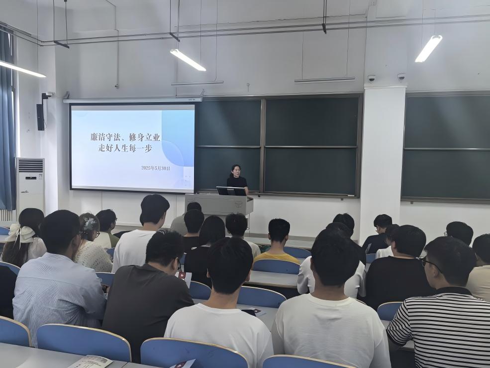 为加强毕业生党员的党性修养,引导毕业生党员树立正确价值观,筑牢廉洁思想防线,5月30日上午,能源与动力工程学院党委书记邹娟以“廉洁守法,修身立业,走好人生每一步”为题为学院2025届毕业生党员讲授专题党课。